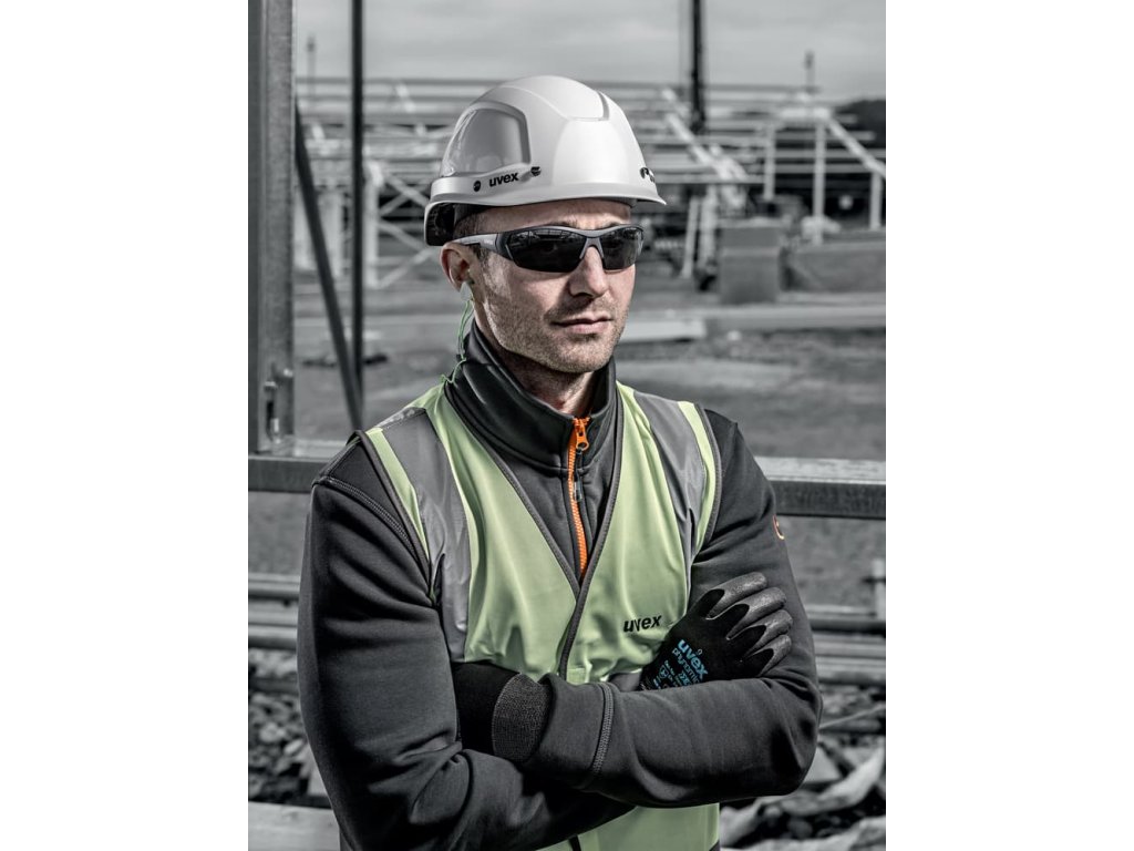 Odolný polykarbonátový zorník je vybaven technologií povrchové úpravy uvex supravision, která zlepšuje ochranu zorníku a přispívá k lepší viditelnosti při práci.