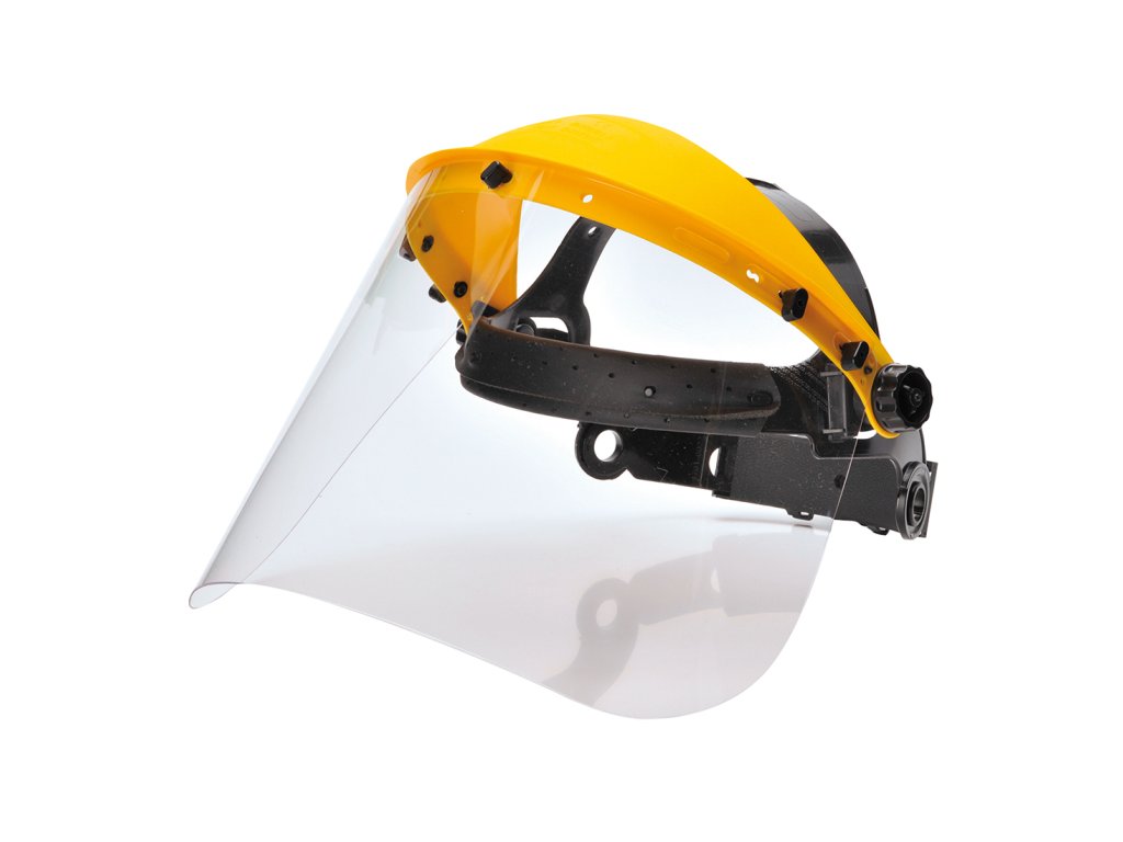 Ochranný obličejový štít je navržen pro maximální bezpečnost při práci v prostředí, kde hrozí nebezpečí poranění obličeje letícími částicemi nebo kapkami.