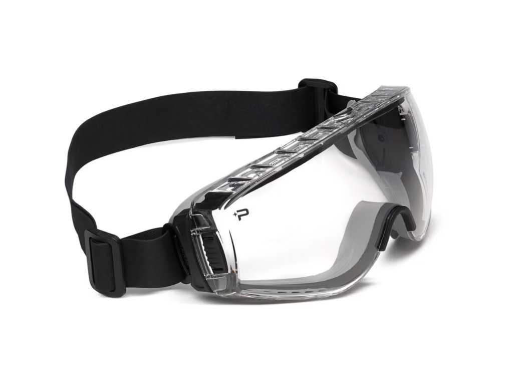 Uzavřené ochranné brýle s čirým polykarbonátovým zorníkem a nepřímým odvětráváním.